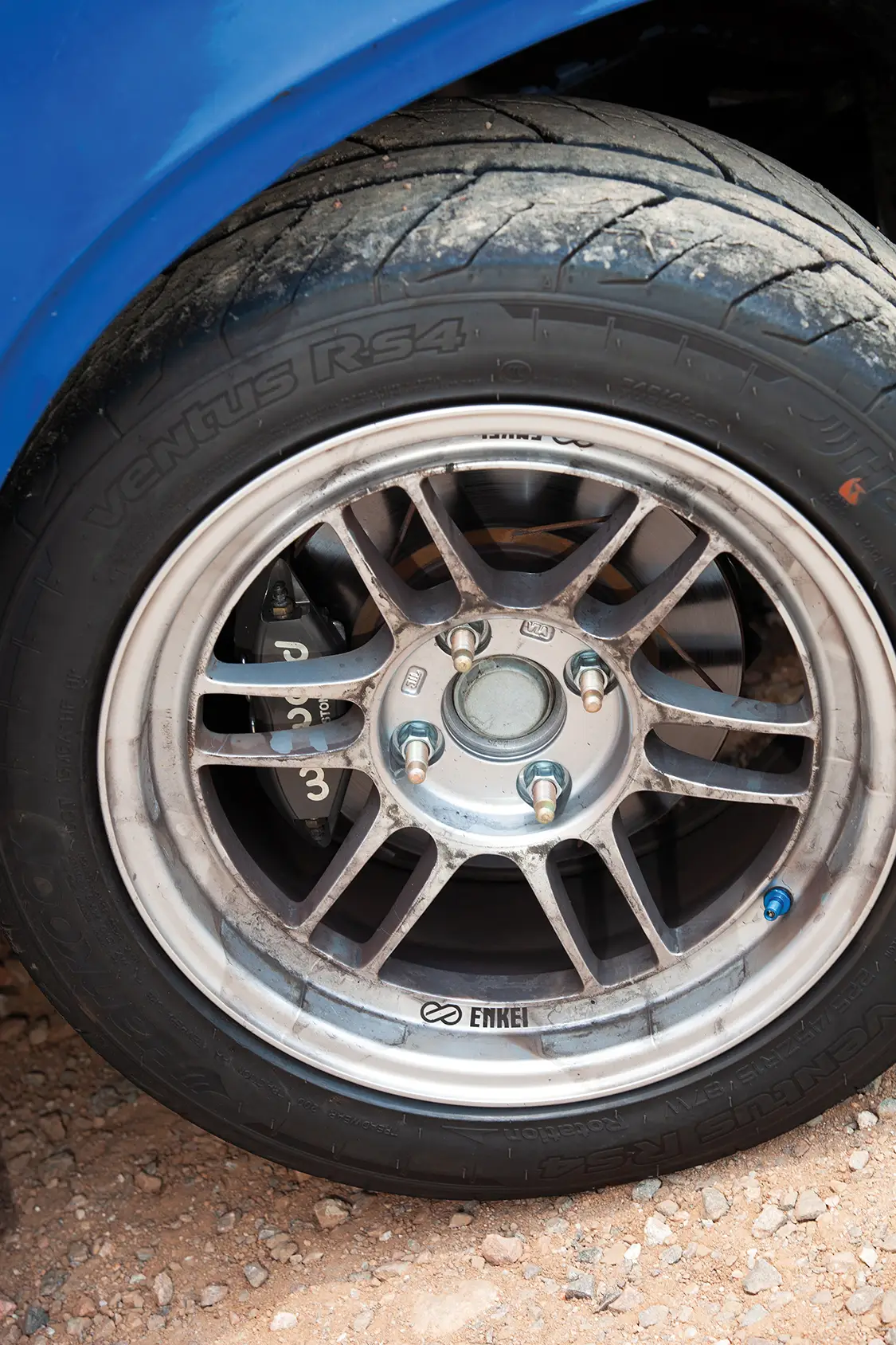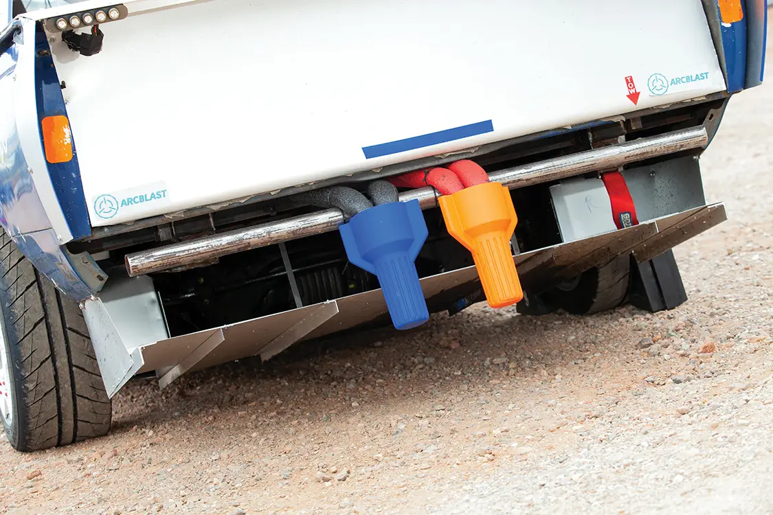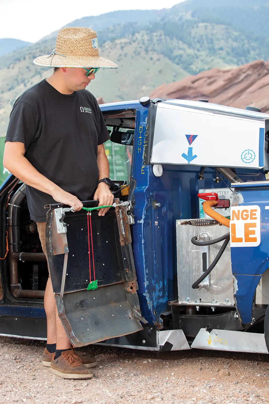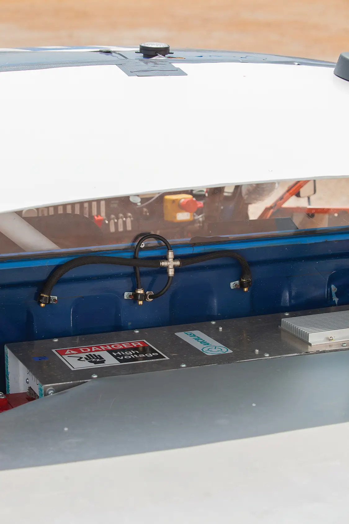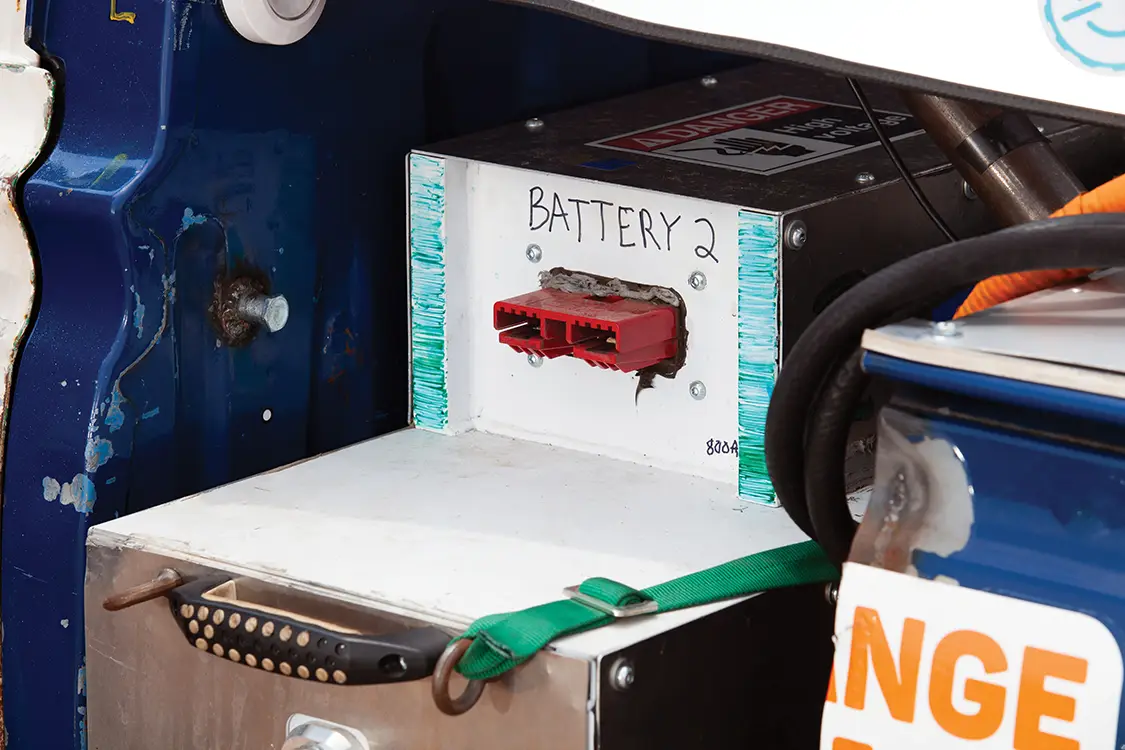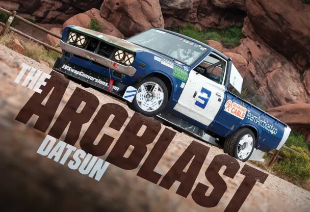 Published on October 16, 2025 Author Jerome Andre Share article Facebook 0 Twitter 0 Mail 0 ArcBlast Datsun 620: The Electric Pickup That Redefined Endurance Racing Running 1,095 Miles at Lemons Thunderhill Raceway, Northern California—It’s three in the morning, 95 degrees of heat are still radiating off the tarmac, and a beat-up 1970s Datsun 620 pickup is howling through the darkness. It’s not the howl of carbs or a straight pipe. It’s the turbine-like whine of a Hyper 9 electric motor, buried inside one of the most improbable endurance race cars ever to roll into a 24 Hours of Lemons paddock. In the driver’s seat is Nick Chimento, a Colorado engineer who, along with teammate Tyler Joy, ripped this truck down to the rails and rebuilt it into a science project on wheels. Under him: Miata suspension, Jaguar I-PACE batteries, and a water-cooled charger rack in the pits that looks like it came straight out of NASA. On the dash: a simple switch panel and regen toggle. On the line: 25 hours and one minute of nonstop racing against 115 teams of gas-burning junk. By dawn, the ArcBlast Datsun would do something no EV had ever done at Lemons before: cross the 1,000-mile mark in a single race. Why an EV Lemons Car? “Honestly, it just seemed like fun,” laughs Tyler. “I had this truck for years. It kept blowing gas engines. Lemons had this standing challenge: $50,000 in nickels for the first EV to win a race outright. I figured, why not?” It was never about winning on pace. In Lemons, endurance and creativity matter more than outright speed. ArcBlast’s goal was to prove an EV could survive 24 hours where hundreds of gas cars had cooked clutches, blown head gaskets, and grenaded gearboxes. The truck had already failed once, managing just 48 miles in its earliest attempt. “We knew we had the wrong approach,” Nick recalls. “So we went back, redesigned the packs, built a swappable system, and cut everything down to the essentials. If it didn’t make the truck faster or last longer, it got cut.” There’s a full cage inside the stripped Datsun cab. The Cockpit: Quiet, Blunt, and Busy Open the door (lightened), drop into the bucket (low), and your feet land in a footwell cut and boxed to fit long legs and racing boots. The seat sits slightly off-center toward the middle, a packaging play that gives extra room around the column while nudging weight toward the chassis centerline. The switch panel is fully functional, featuring a regen selector, fan and pump toggles, drive/reverse rocker, brake-bias reset, data logger, livestream, comms, and E-stops. A simple multimeter-style readout currently stands in for the BMS temp display the driver really wants. The next big upgrade is proper battery telemetry in the cockpit and live data to the pit wall to sharpen stint strategy. No power assistance means feedback you can taste. Steering loads rise with fatigue. Brakes demand a square hit, lap after lap. The reward is remarkable clarity. Without engine thrash, you can hear the tires. Without vacuum boosters and ABS logic, your left foot knows what the pads are doing. It’s raw and old-school—and somehow more modern than any gas car on the grid. Offset driving position improves handling significantly. Hyper 9 Muscle A NetGain Hyper 9HV motor, water-jacket cooled and paired to a stout single-speed reduction drive, is present. It’s rated around 120 horsepower with 173 lb-ft of torque. Those numbers don’t sound wild until you realize the Datsun weighs barely over 2,000 pounds. It’s raw, as there are absolutely no creature comforts: no power steering, no power brakes, and no ABS. Regen braking is adjustable via a cockpit switch. Off is free-coast, soft feels like mild engine braking, and full regen is brutal and loud enough to mimic a turbo blow-off valve. You back off at 7 mph, and it’ll just whine like a banshee. A DIY aero splitter is braced under the nose. The Batteries: Jaguar DNA Power comes from Jaguar I-Pace modules, repackaged into three custom packs of about 12 kWh each. One runs in the truck, while two more sit on standby in the pits. During each 70- to 80-minute stint, the truck drains roughly 28 kWh. When it pits, the crew does a driver change and slides in a fresh pack. “We built it like a cartridge system,” Nick explains. “The pack sits on spring-loaded rails. Rear locating pins slot it into place. Two front bolts clamp it down. One Anderson connector does HV and all the CAN interlocks. That’s it. Swap time is about three minutes.” Safety was non-negotiable. The Orion BMS won’t let the contactors close unless every interlock reports safety. Unplug the pack, and it’s dead. No sparks, no live ends, no drama. THE dual cooling system works a treat. The Cube Farm If the packs are the cartridges, the paddock is the charging bay. Each of ArcBlast’s two giant charging cubes contains 12 DIY water-cooled chargers, paralleled to deliver ~140 amps at ~160 volts—about 22 kW per cube. With both cubes running, the team can pump nearly 45 kW into a pack while chilling it. The cubes feed from whatever the paddock offers—RV pedestals in Colorado and Blink J1772 stations at Thunderhill. Inside, coolant loops run across plates, with a pump, radiator, and fan system keeping the chargers at safe temps. Battery cooling gets an extra layer: an industrial laser chiller that pre-cools packs before they’re loaded into the truck. “We’ll drop them below track temp so they heat up more slowly on-track,” Tyler says. During the Thunderhill 25-hour, live readouts showed a comfortable 25°C in the pits even as the ambient soared past 100°F. A custom battery pack slides into spring-loaded rails. Underneath, almost nothing of Datsun remains. The entire suspension was cut away and replaced with Mazda Miata subframes, chosen for their cheap availability and proven track performance. Coilovers, racing bushings, and Lemons-legal safety gear round out the package. The aero is a h